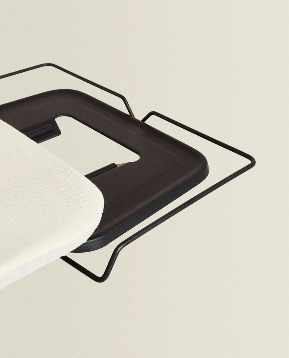 Foldable ironing board made of wood. Comes with a fabric case. Easy to store and can be adjusted.Its maximum height is 95 cm, while the minimum height is 65 cm.