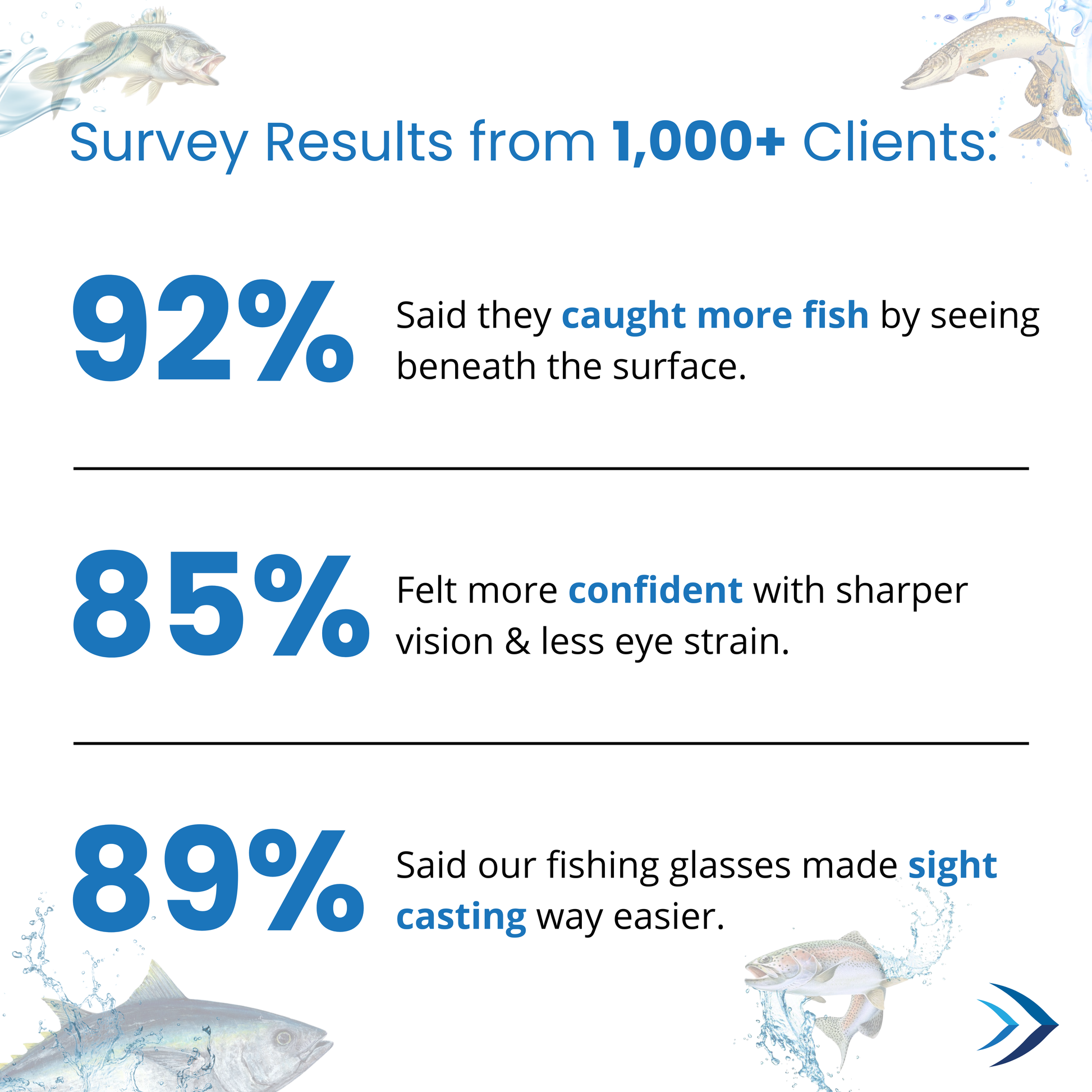 Our fishing glasses are built with advanced glare-cutting lenses that go beyond standard polarization, developed to make fish stand out up to 20 feet against their underwater environment — while bringing out vivid colors, contrast, and clarity.